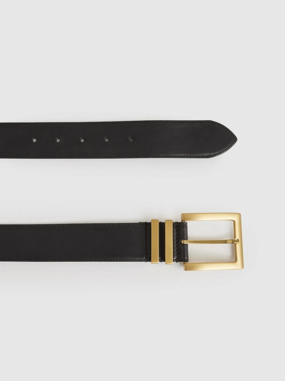 The black Brompton belt is an effortlessly wearable style for complimenting outfits. It’s crafted from supple leather bordered by tonal topstitching. Wear it to anchor high-rise jeans and a tucked-in shirt. Leather fabrication Tonal top-stitching Gold-tone metal buckle Width 3.5cm 100% Leather.