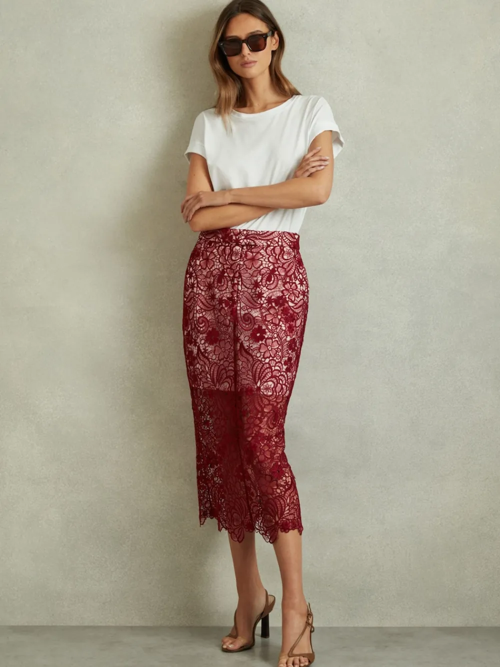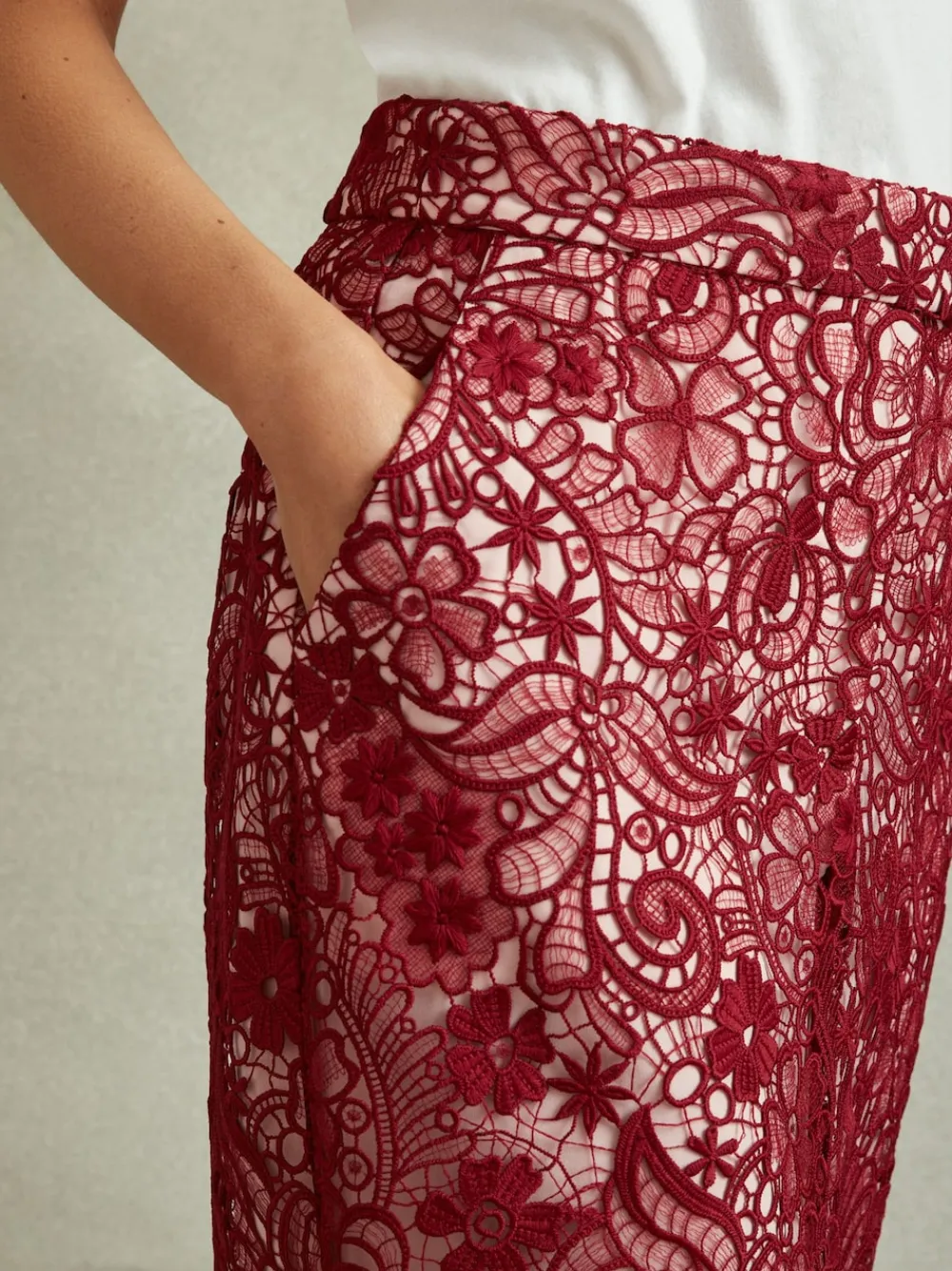 Be the first to review “Reiss Burgundy Flo Sheer Lace Midi Pencil Skirt New” Cancel reply