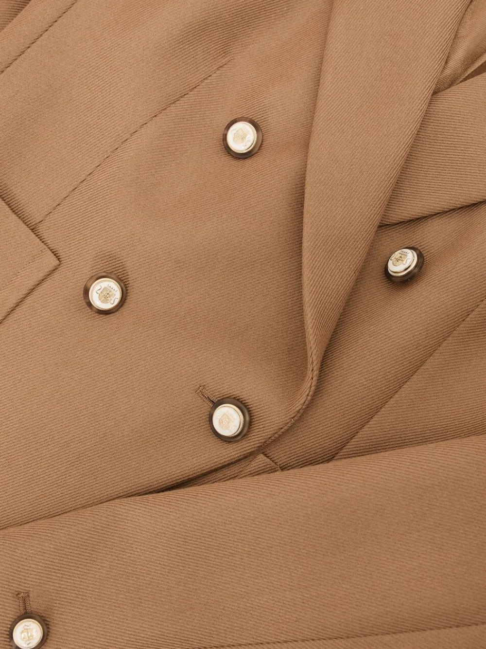 The Gigi blazer is expertly tailored from wool-blend twill to a double-breasted silhouette with a front cutaway. It’s finished with peak lapels, patch pockets, and crest-detailed buttons.Wool-blend twillDouble-breastedPeak lapelsCrest-detailed buttonsFront cutawayPatch pockets Regular centre back neck to hem 25.5″ / 65cm. Dry clean only. 50% Wool, 30% Viscose, 20% Polyester.