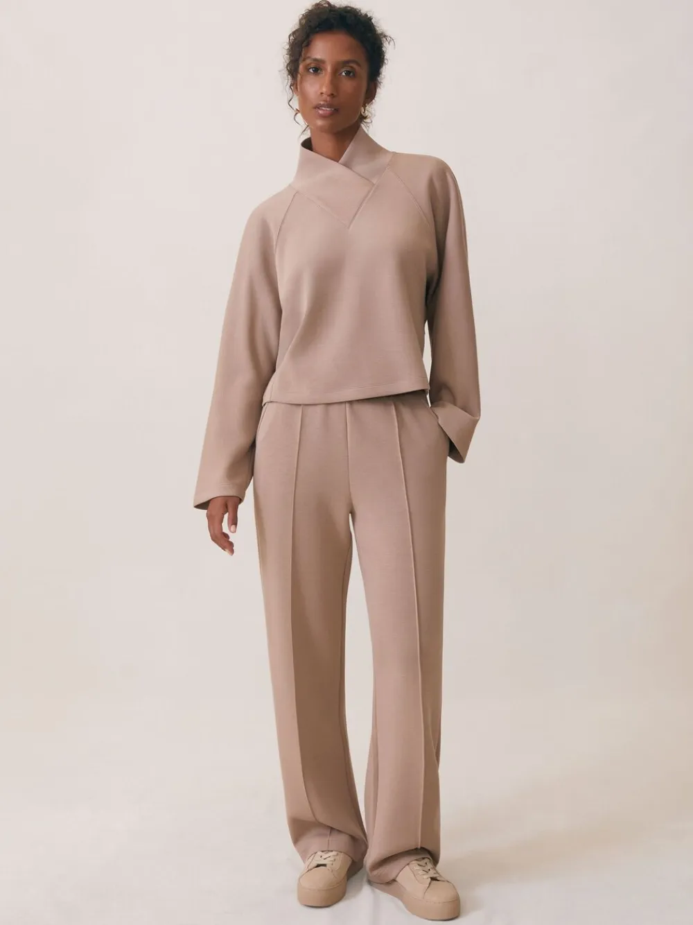 The Jemma Taupe Neutral joggers are crafted from our premium cloud interlock a silky-soft modal-blend jersey with a fluid drape They re cut for a wide-leg silhouette and feature pintucks and a drawstring waist Modal-blend premium interlock jersey Wide leg Front pintucks Side slip pockets Elasticated drawstring waist Machine washable. 49% Modal, 46% Polyester, 5% Elastane.