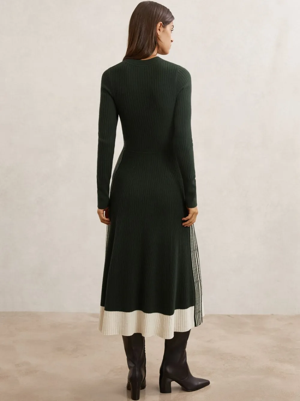 The Aria dress is rib-knitted from a soft wool-blend with a touch of cashmere. Contrasting side stripes and a hem panel add visual interest. Wool-blend with cashmere Rib-knit Contrast stripes High neckline Contrasting hem panel Regular side neck to hem 48″ / 122cm. Hand wash only. 49% Wool, 34% Viscose, 11% Nylon, 6% Cashmere.