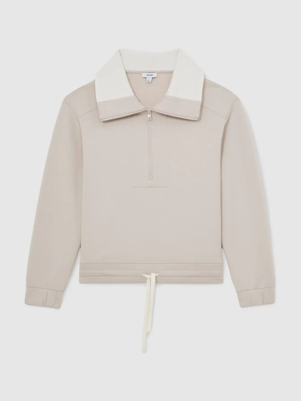 Reiss Laney Premium Interlock Half-Zip Sweatshirt Stone Neutral Discount