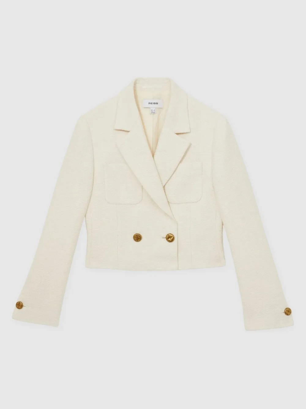 Be the first to review “Reiss Mia Double-Breasted Textured Cropped Blazer with Wool and Cotton White Online” Cancel reply