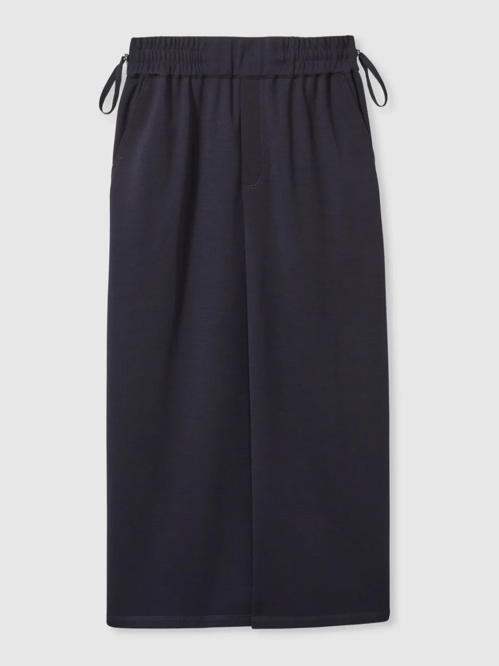 Crafted from a wool-blend jersey, this midi skirt offers both comfort and style. It has an elasticated waistband with a discreet side toggle for a custom fit, whilst a reverse hem slit adds subtle movement, making it an elegant yet functional choice. Wool-blend jersey Elasticated waistband with side toggle Side slip pockets Welt pocket to reverse Hem slit to reverse Midi Regular waistband to hem 32.5″ / 83cm. Dry clean only. Main 50% Wool, 30% Polyester, 20% Nylon. Control Panel 100% Viscose.