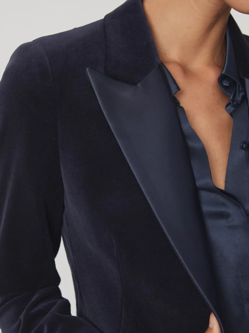 The Verda blazer is cut from plush velvet to a single-breasted silhouette, with satin peak lapels, pocket welts, and buttons lending a classic tuxedo touch. A single-button closure completes the refined evening design. Velvet Single-breasted Satin peak lapels Satin-trimmed welt pockets Button cuffs Single-button closure Dry clean only. 100% Cotton.