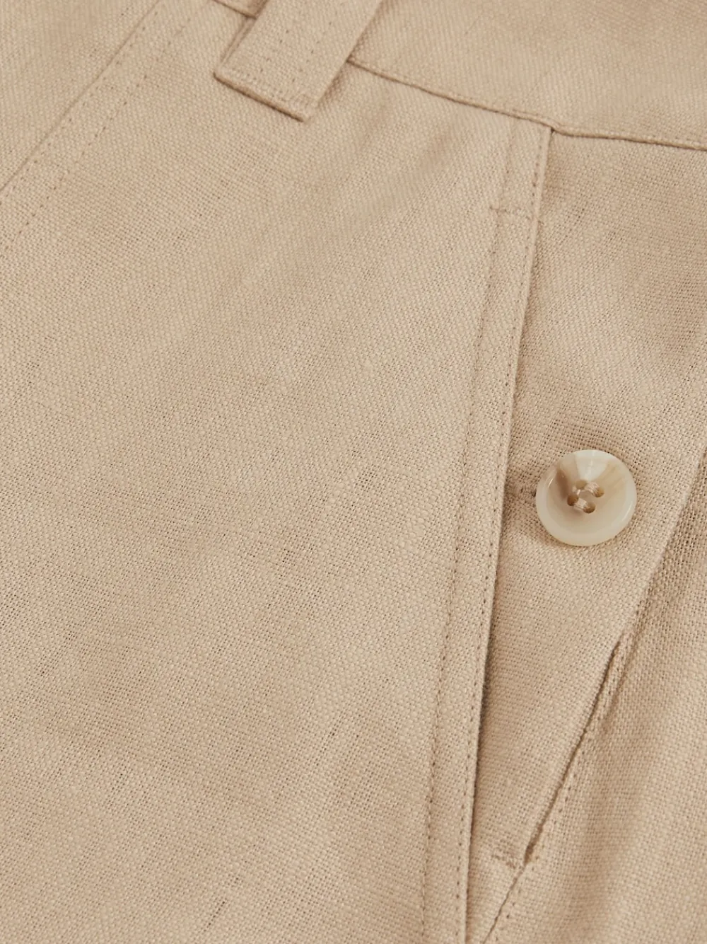 The Neutral Ashby shorts are defined by a wide-leg silhouette, offering a relaxed, off-duty feel. Crafted from 100% linen for lightweight comfort, they’re elevated by contrasting tortoiseshell buttons that enhance their effortless holiday appeal. 100% linen Side slip pockets Side buttoned pockets Patch pockets to reverse Front button and zip Belt not included The model is wearing a size 8. Measurements of model: Height 5ft 10” / 178cm. Regular inside leg length 3″ / 8cm. Machine washable. 100% Linen.