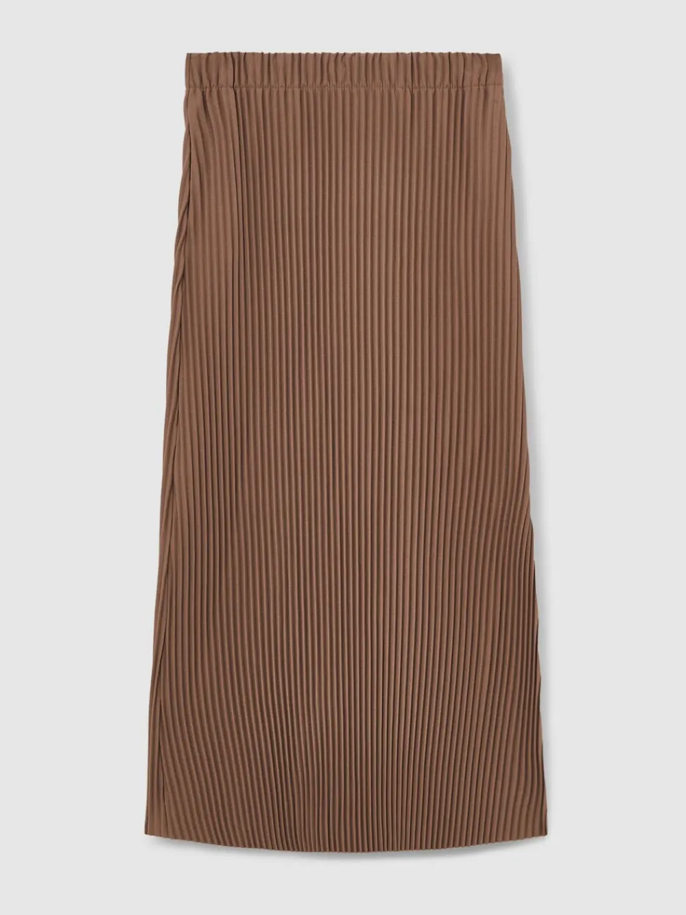 Crafted from jersey with an elasticated waistband, the Pippa midi skirt is ideal for creating refined yet comfortable looks. Accented with tactile pleats throughout, it’s eased by a thigh-grazing side slit. Lightweight pleated jersey Elasticated waistband Midi hem Side slit The model is wearing a size 8. Measurements of model: Height 5ft 10” / 177.8cm. Regular waistband to hem 34.5″ / 88cm. Machine washable. 95% Polyester, 5% Elastane.