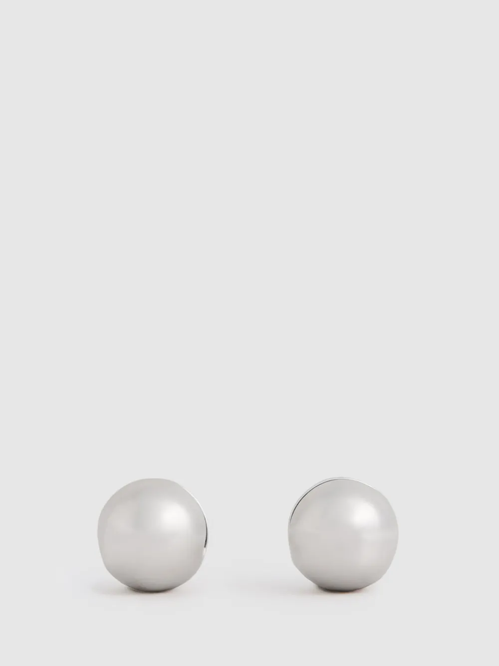Reiss Pollie Polished Ball Huggie Earrings Silver Tone Online