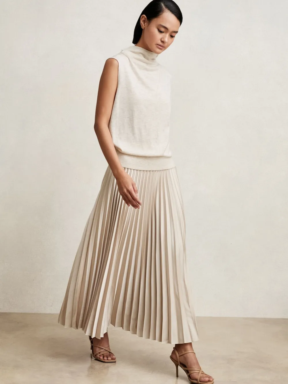 Be the first to review “Reiss Seren Pleated Midi Skirt Champagne Neutral New” Cancel reply