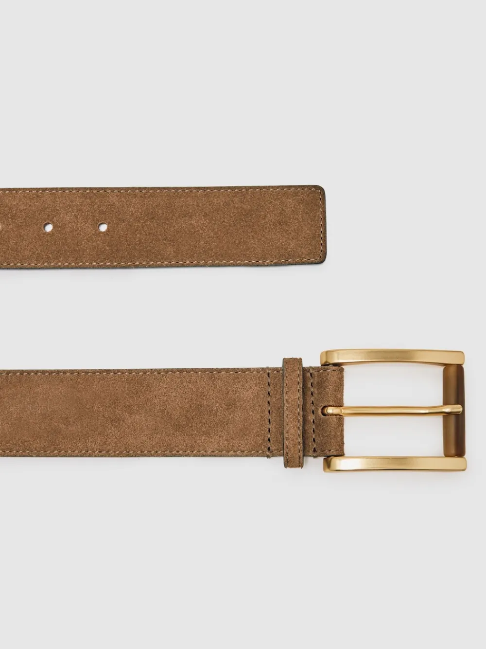 The Rosie belt is an effortlessly wearable accessory to complete your outfit. Crafted from supple suede it is accented with a gold-tone roller buckle. 100% suede Gold-tone roller buckle Punch holes Square tip Adjustable fit Width 3.5cm 100% Suede leather.
