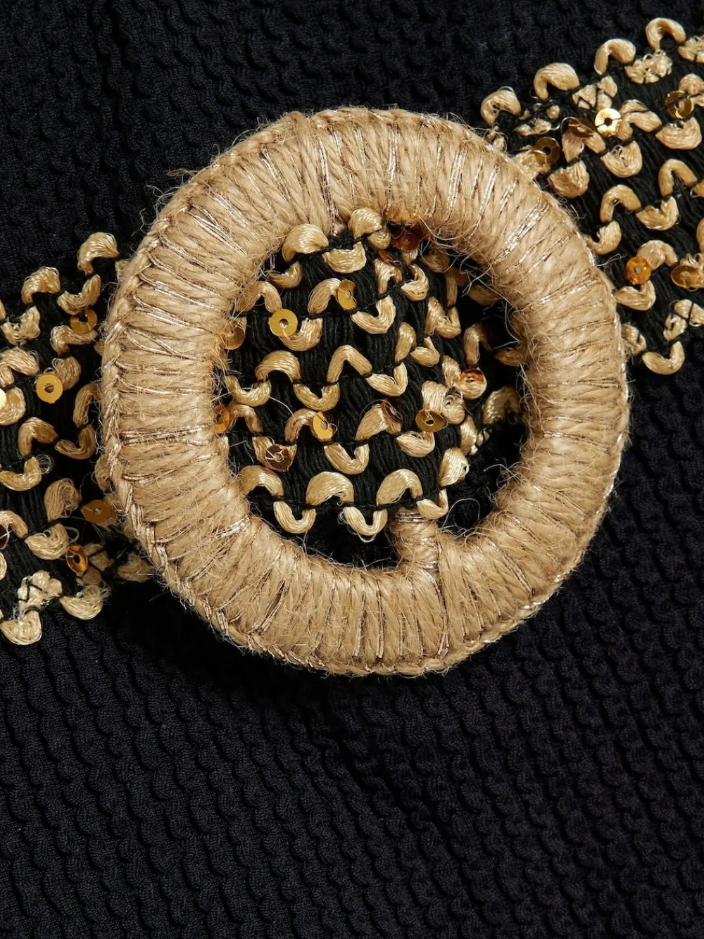 Plunged V-Neck Sleeveless Textured Belted design Petite collection Machine washable. 96% Nylon, 4% Elastane.