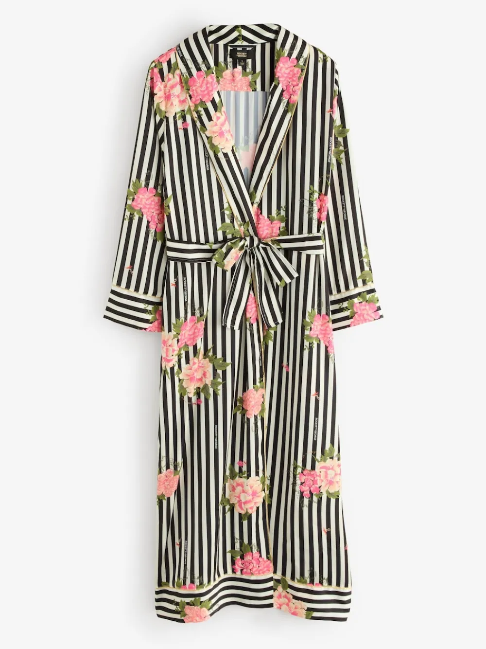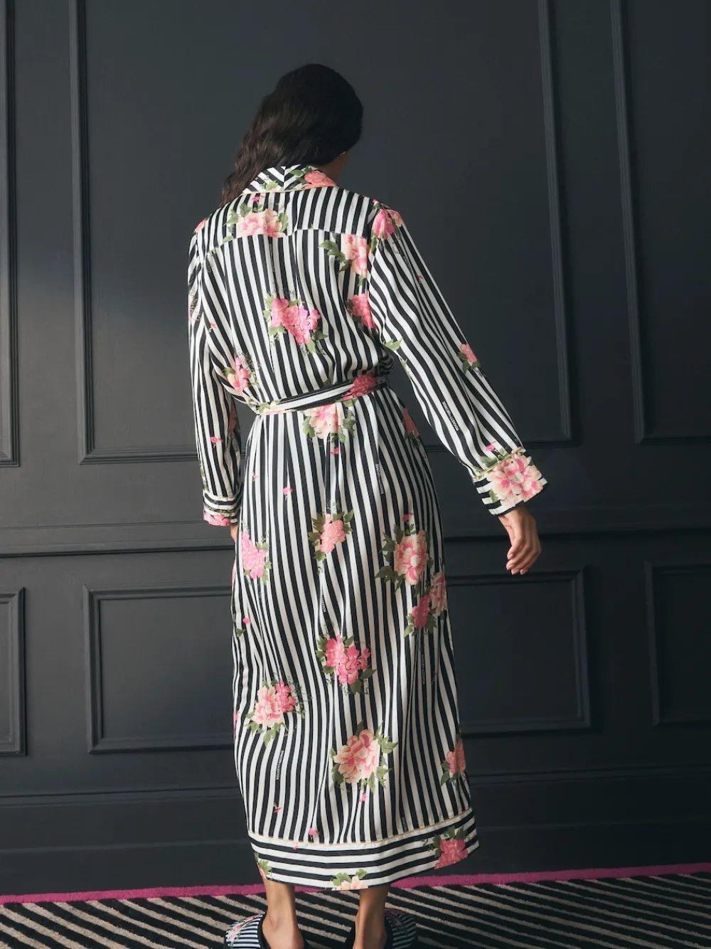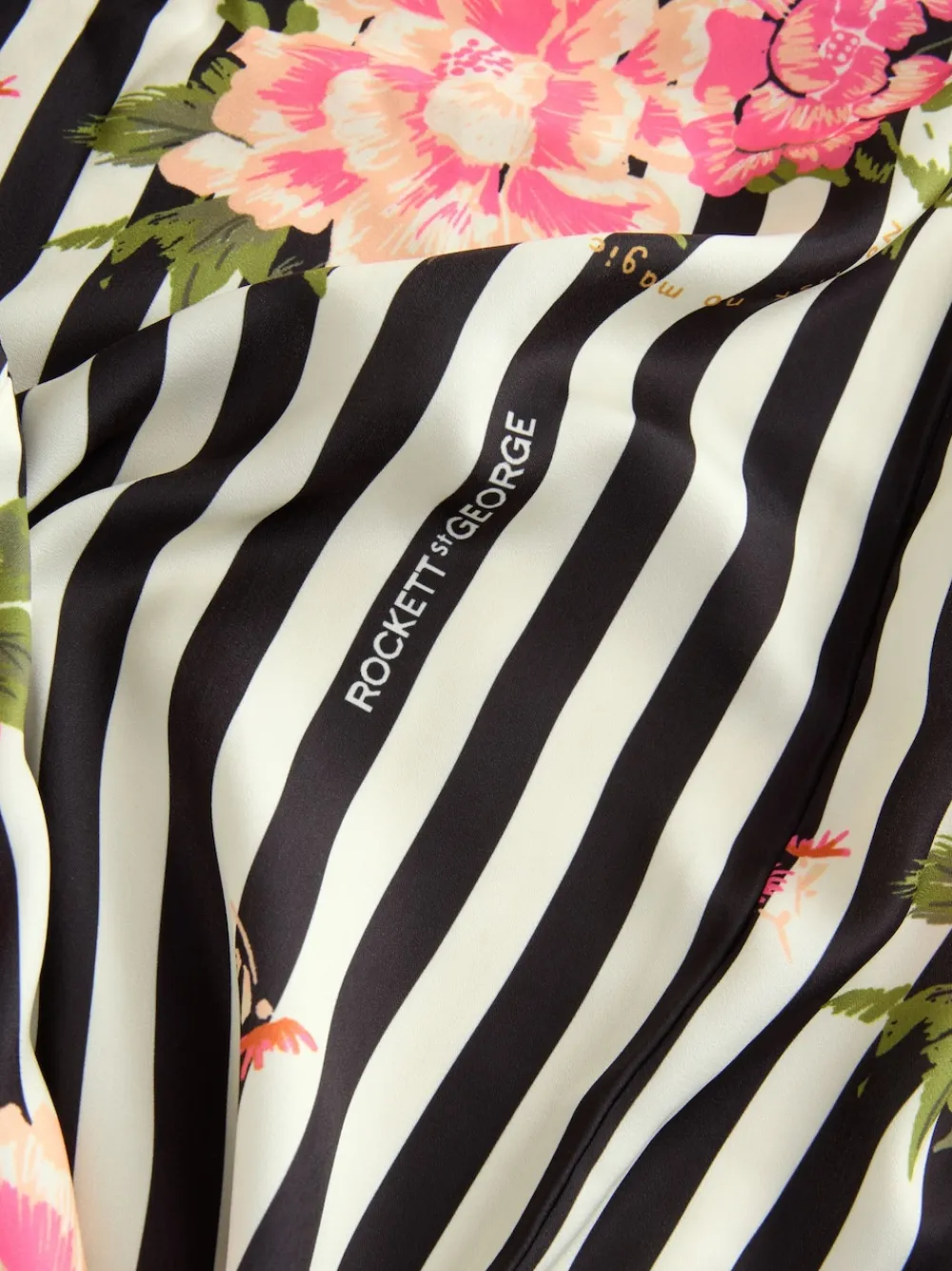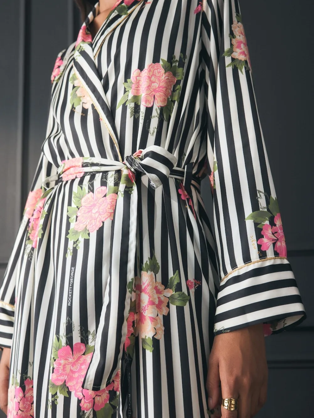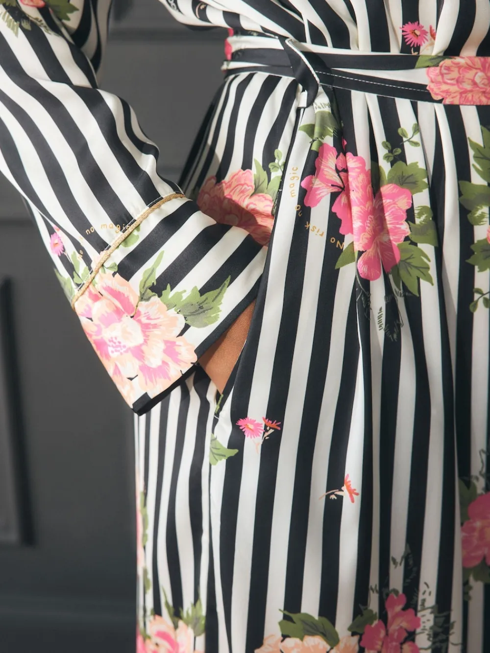 Rockett St George Black/White Flower Power Stripe Satin Robe Discount