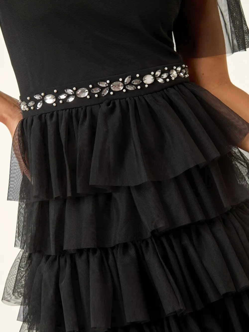 Be the first to review “Roman Black Petite Embellished Mesh Tiered Dress” Cancel reply