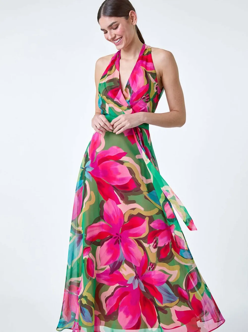 Be the first to review “Roman Pink Floral Print Halterneck Maxi Dress Discount” Cancel reply