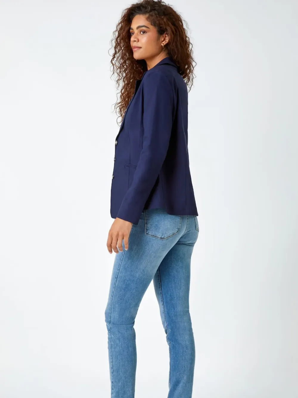 Roman Stretch Button Detail Blazer Blue Best