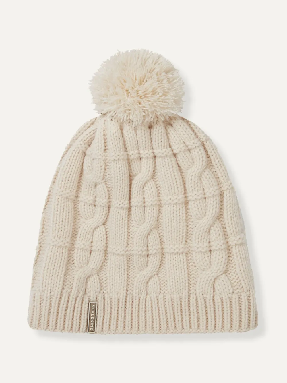 Sealskinz Hemsby Waterproof Cold Weather Cable Knit Bobble Hat Cream Online