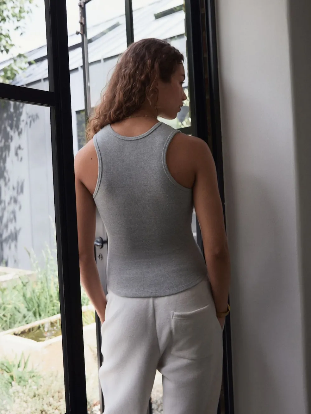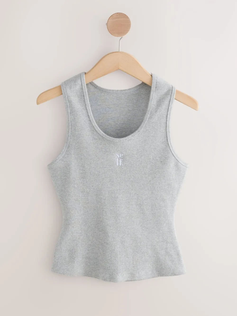 self. Cotton Rib Scoop Neck Vest Grey Marl Best