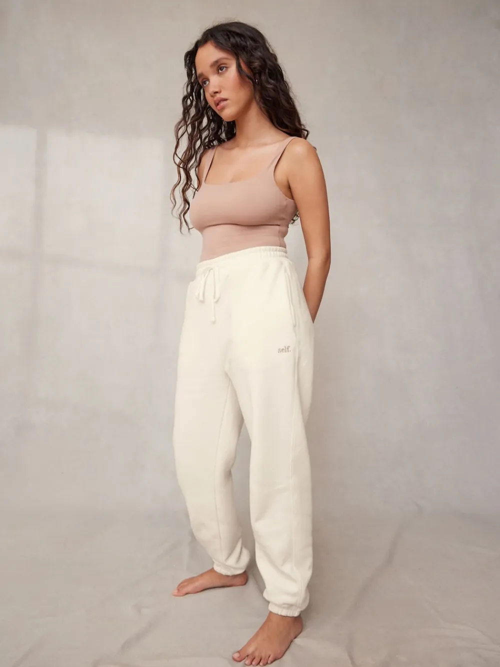 self. Cuffed Joggers Ecru Outlet