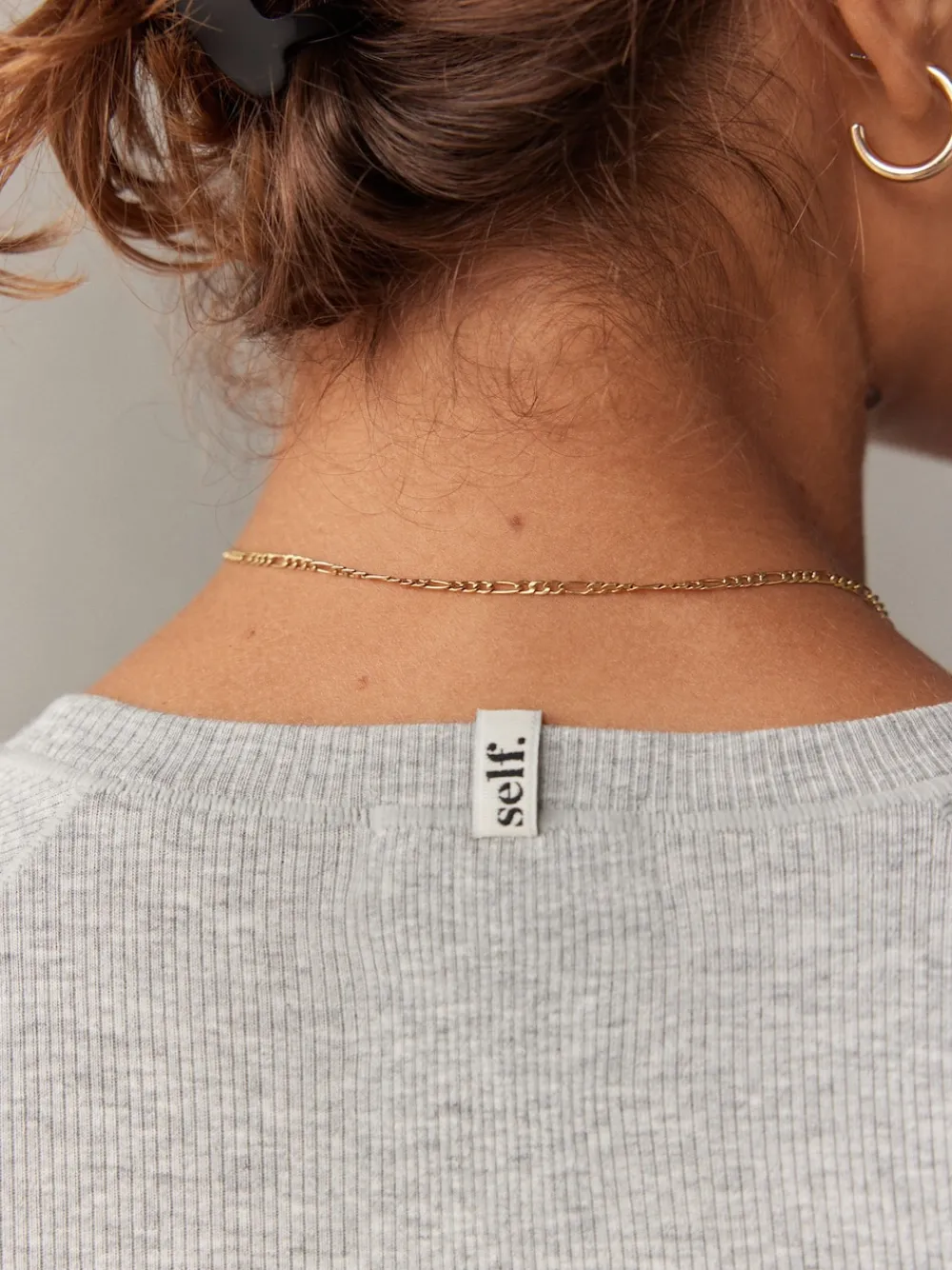A staple to wear on repeat, the fitted rib tee by self. is so comfortable you can wear as a layer or make a statement of your loungewear. Crafted from soft stretch cotton in a fine rib with crew neckline and cropped silhouette. Great for elevated lounging or teaming with your favourite denim. Fitted t-shirt Ribbed Cropped Crew neckline Short sleeve Machine washable. 59% Cotton, 37% Polyester, 4% Elastane.