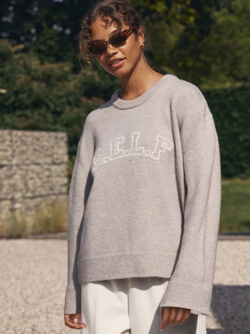 Achieve a perfectly laidback look with the self. Oatmeal Knit Jumper. This comfortable jumper is made from a soft yarn for an extremely soft feel. A subtle embroidered ‘self.’ logo sits across the chest. Team it with leggings and trainers for a cosy, everyday style. Soft yarn Embroidered chest logo Crew neck Machine washable. 74% Acrylic, 25% Recycled polyester, 1% Elastane. Warning: Keep away from fire and flames.