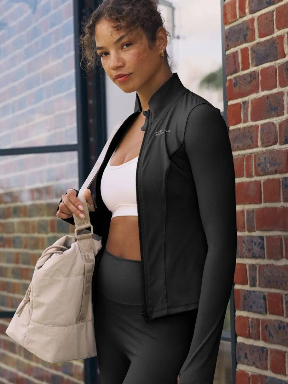 Supportive and stylish, the self. sculpting zip-through jacket is designed with contouring seam lines for a flattering fit. In a rich shade of chocolate brown, the fitted jacket also features thumb holes to the sleeves. Team yours with the matching leggings and a sports crop top for gym ready style. Fitted jacket Contour seam lines Thumb holes Machine washable. 75% Nylon, 25% Elastane.