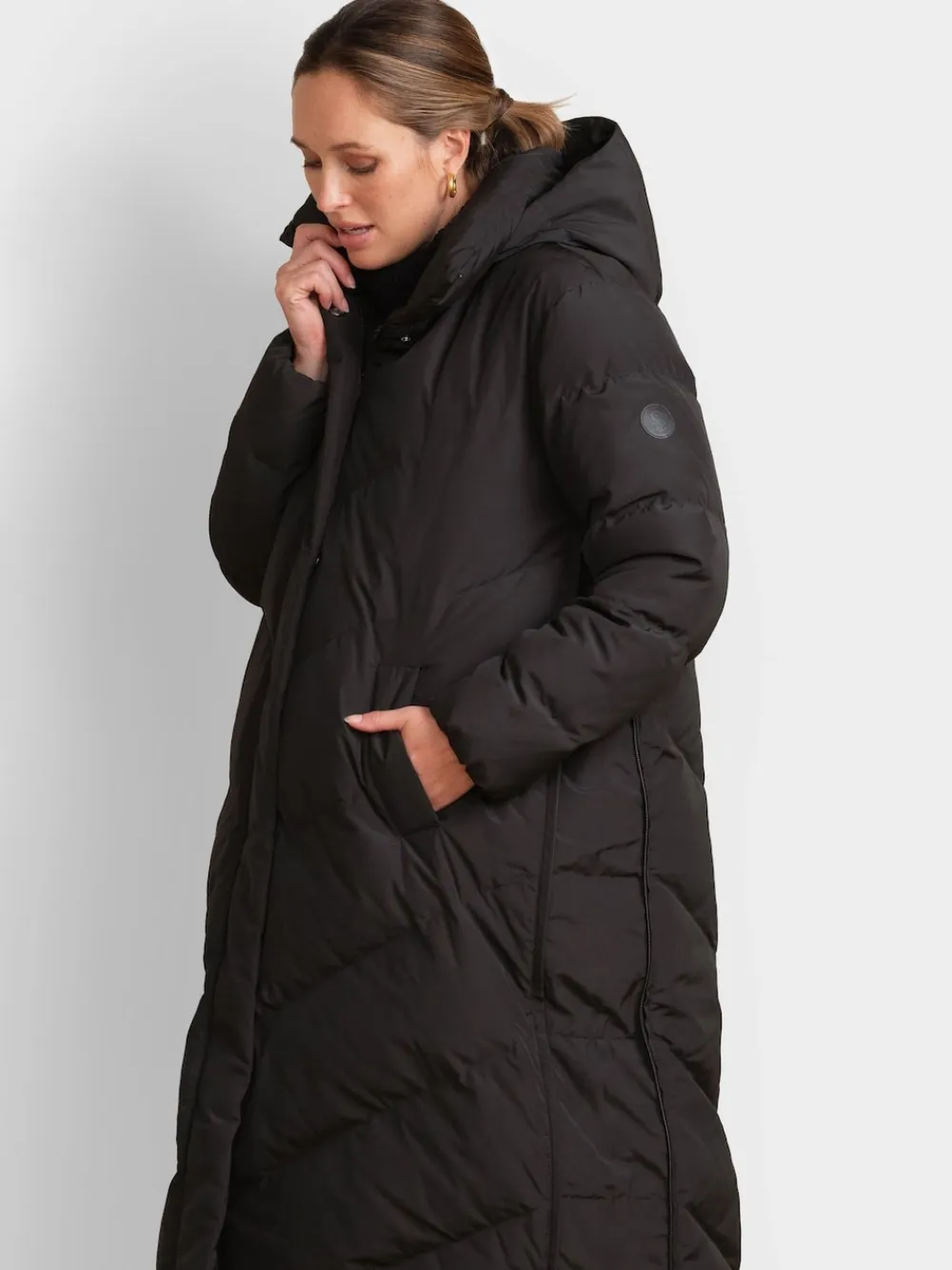 Seraphine 3-In-1 Long Chevron Puffer Maternity Coat Black Clearance