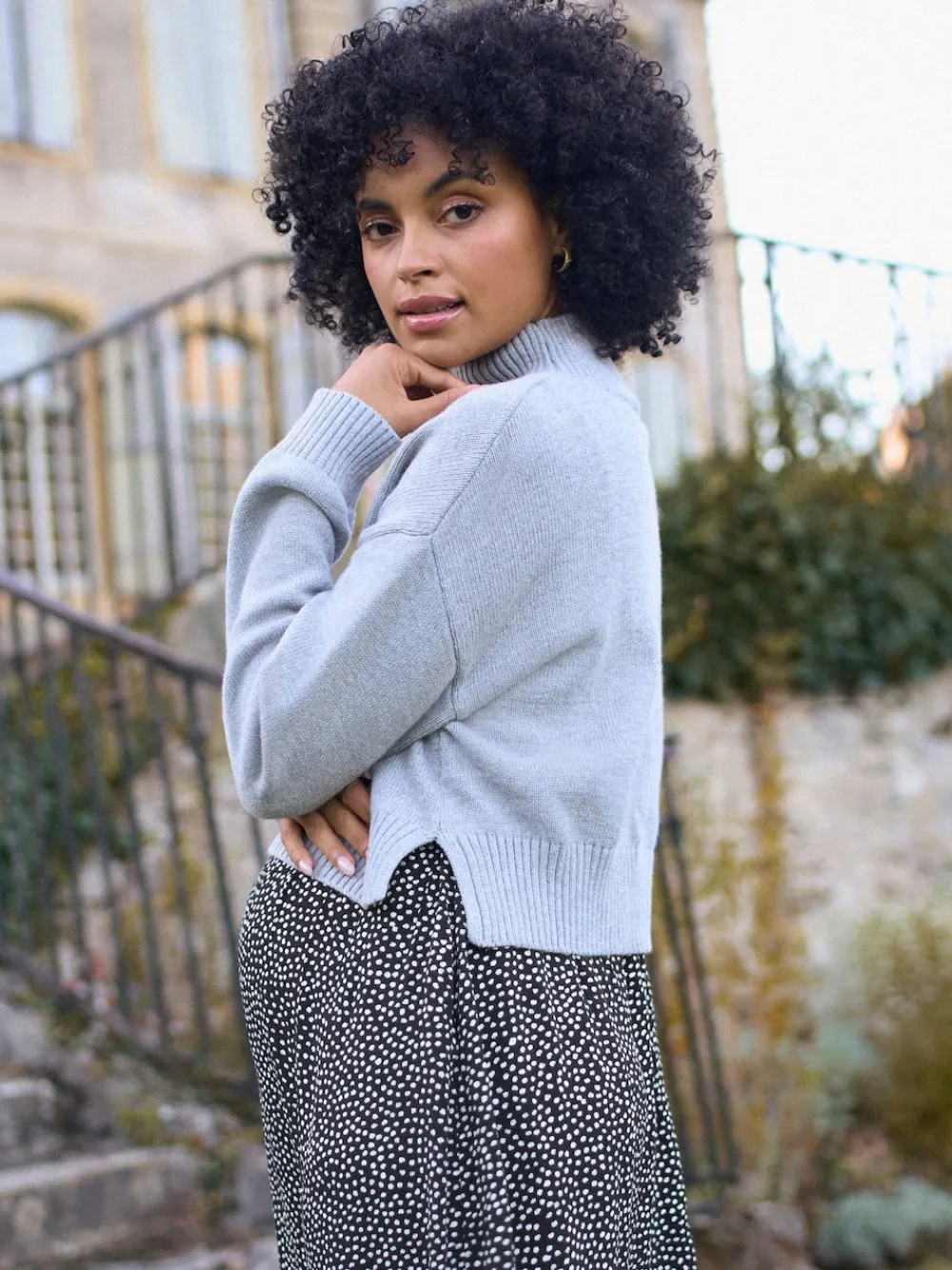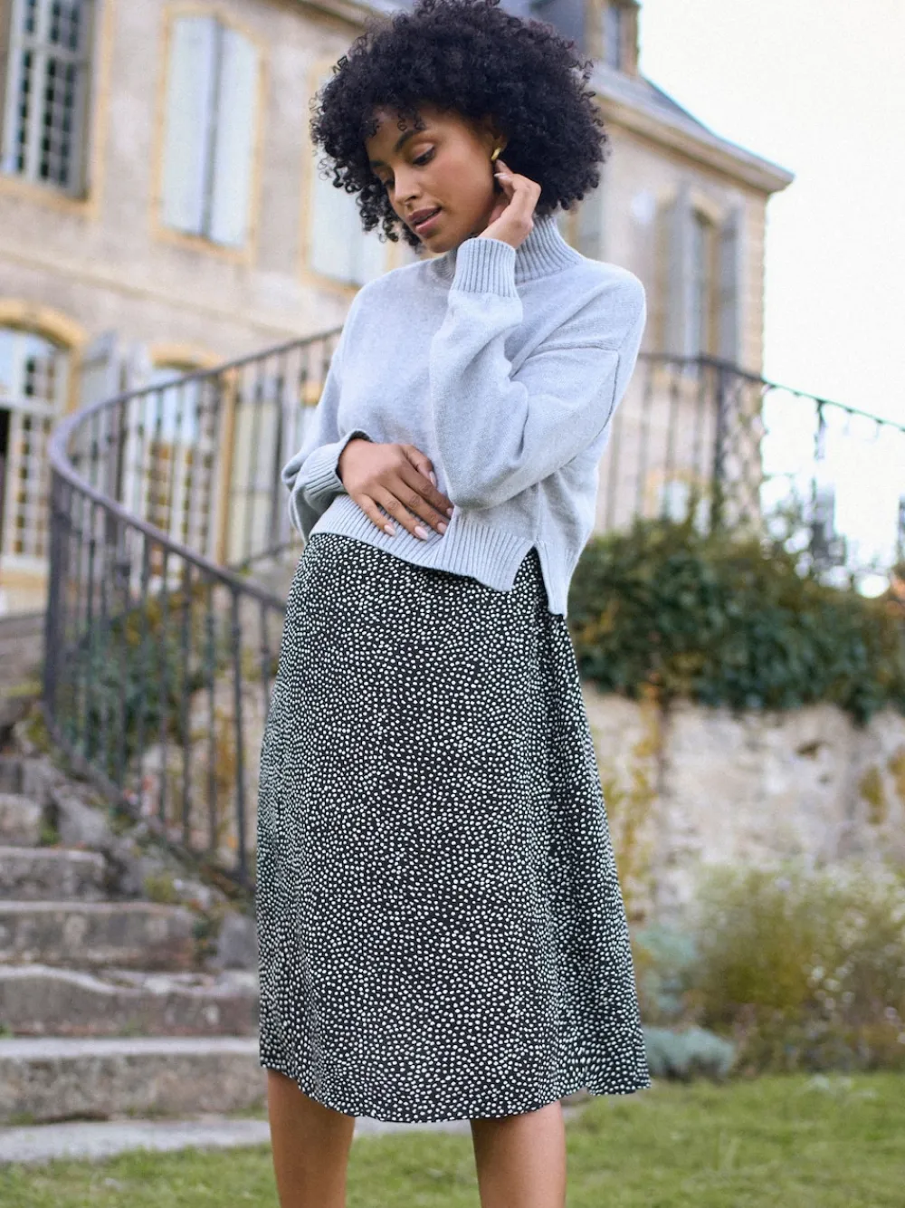 Lift up access for nursing or pumping A-line woven midi skirt with jersey nursing bodice Detachable, relaxed fit knitted top with funnel neck Long sleeves with ribbed cuffs Top & dress can be washed & worn separately Comfy, versatile & SO easy to wear, our Grey 2 in 1 Maternity & Nursing Dress is designed for pregnancy, breastfeeding & new mum life. The super-soft polka dot midi dress drapes beautifully & the relaxed knitted top is designed to offer an easy fit all the way to 9 months. After baby is born, the top lifts up to reveal a built-in jersey nursing bodice for breastfeeding or pumping. And the best part: the cosy knitted top is completely detachable. So, you can wear the two pieces separately or mix & match with other styles in your wardrobe. This dress is perfect for the office or easy everyday wear. Buy your pre-pregnancy size. With over 20 years of maternity expertise, Seraphine styles are designed to grow with you, adapting with you through pregnancy and motherhood. Machine washable. Main 57% Cotton, 33% Nylon, 10% Wool. Bodice 96% Viscose, 4% Elastane. Skirt 100% Viscose.