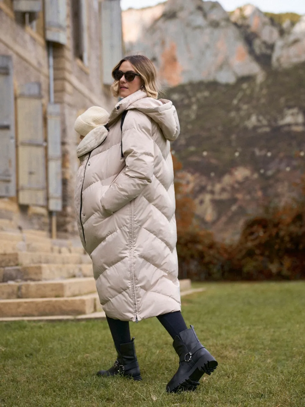 Seraphine Long 3-In-1 Maternity & Babywearing Puffa Coat Taupe Grey Best