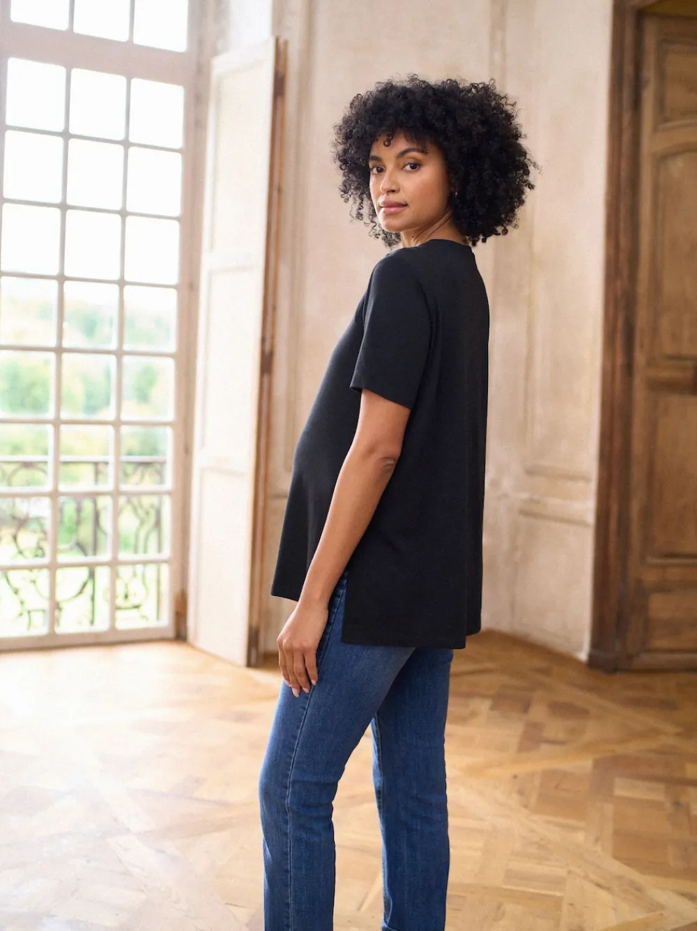 Seraphine Maternity Short Sleeve Cotton Modal T-Shirt Black New