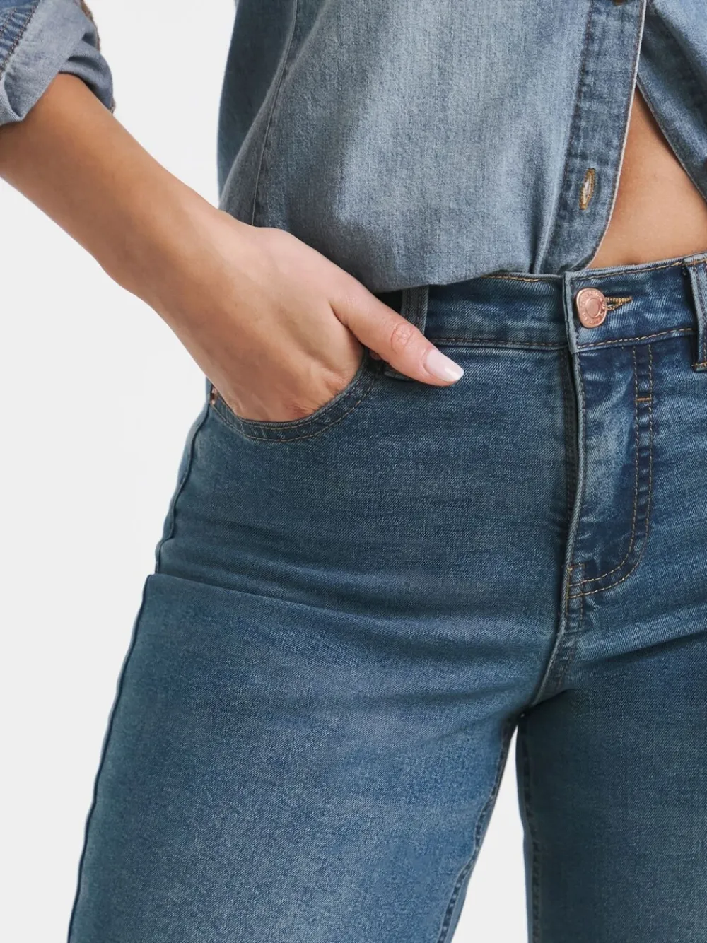 New and improved fit. Our 24/7 straight leg jean is the perfect everyday jean that has been reworked for the season. Updated washes and new fabric with improved stretch and movement, means this straight leg jean can be worn casually and comfortably throughout the day and dressed up to take you into the night. This style features hidden back waist elastication, teamed with a clever tummy tuck pocketing detail for ultimate comfort and fit. Machine washable. 75% Viscose, 22% Nylon, 3% Elastane.