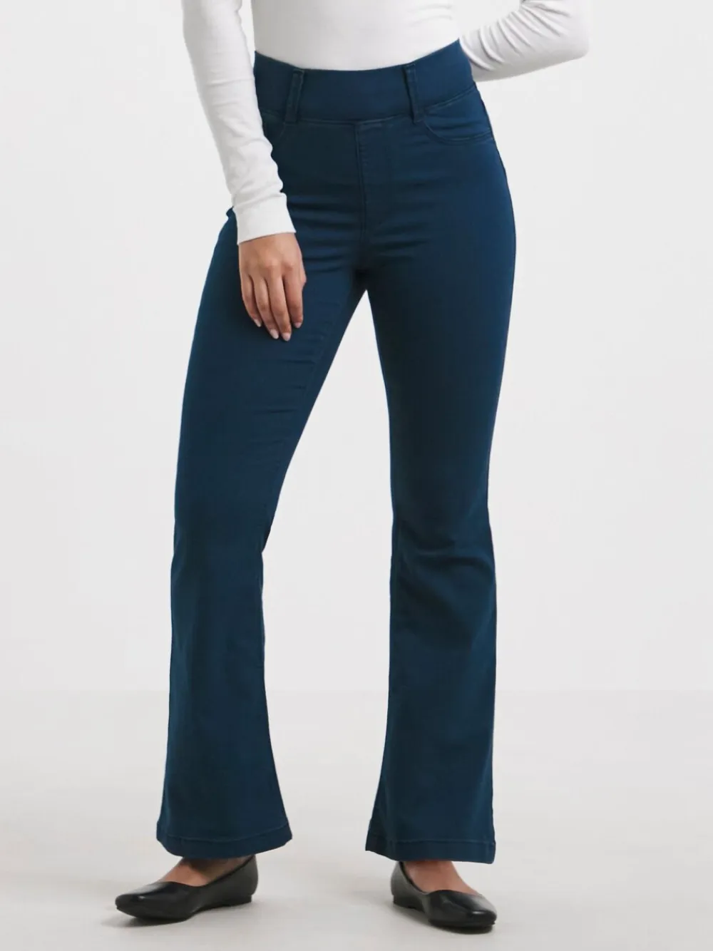 Experience ultimate style and comfort as you pull on these gorgeous bootcut, Blue flared jeggings. Designed specifically to fit perfectly around the waist and hips whilst keeping the well-loved, super stretchy and comfortable fabric that promises to hug your curves in all the right places. The bootcut shape flatters your silhouette while the elasticated waistband ensures maximum comfort. Also featuring mock pocket detail for that extra bit of style, pair with your favourite heels and blouse for a timelessly chic look. Machine washable. 67% Cotton, 31% Polyester, 2% Elastane.
