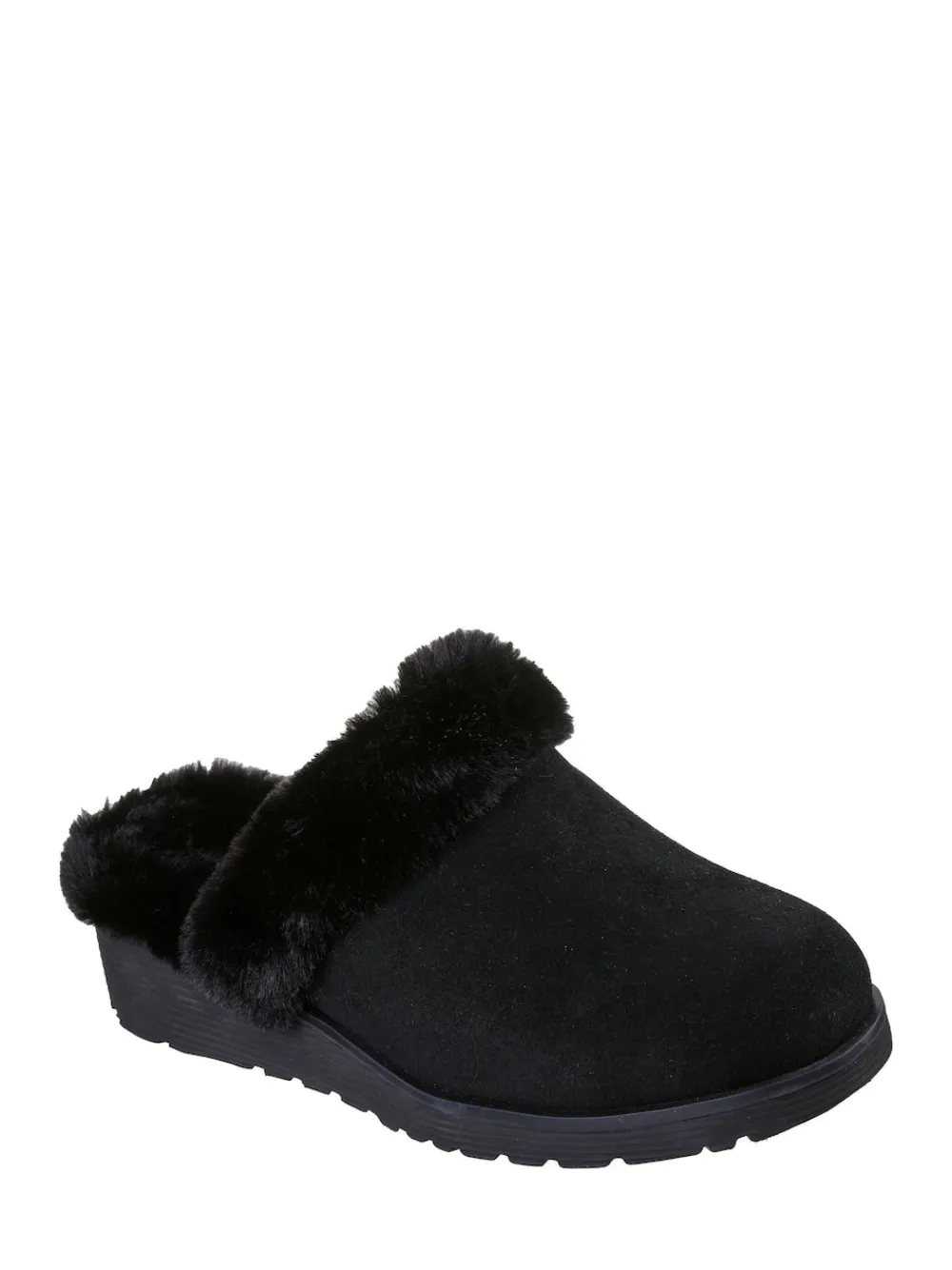 Step into cozy comfort this season in Skechers Keepsakes Wedge – Time To Cruise. This slipper features a 3M® Scotchgard® treated suede upper with faux fur trim and lining, and a cushioned Skechers Memory Foam™ footbed. Upper – Textile, Lining and Sock – Textile, Outer Sole -.