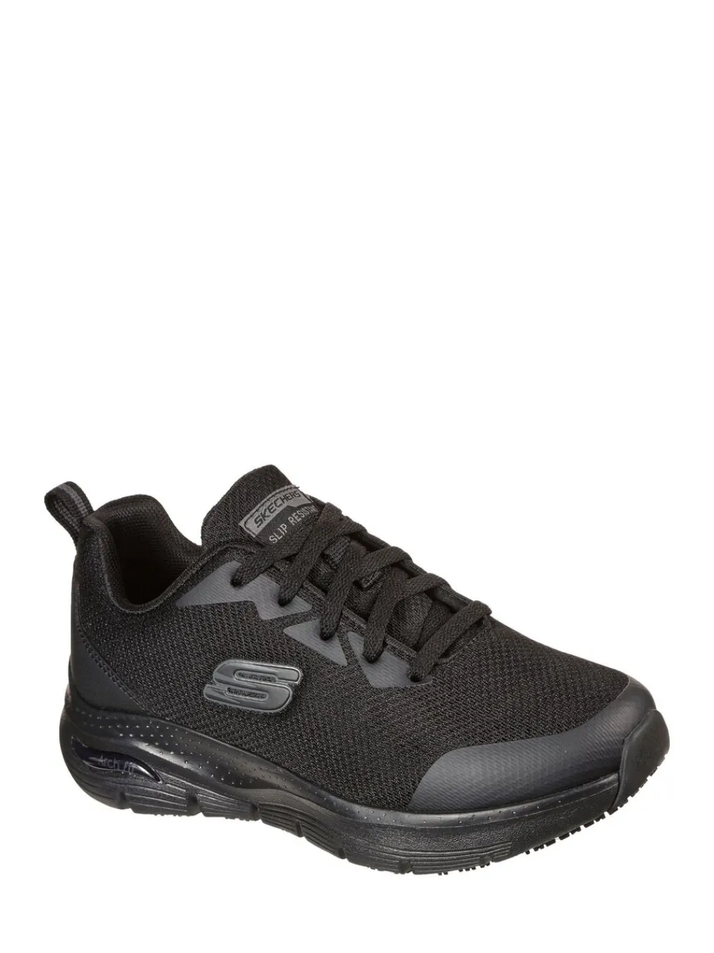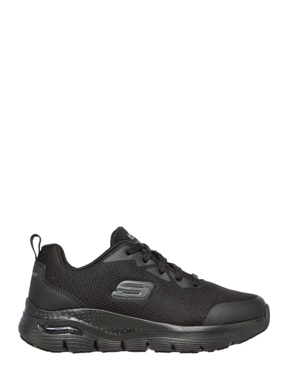 Skechers® Work: Arch Fit® Slip Resistant offers all-day comfort and support with safety you can depend on. This slip-resistant design features a lace-up front in a durable mesh knit and synthetic upper, an Arch Fit® removable cushioned insole and a lightweight flexible midsole. Upper – Textile, Lining and Sock – Textile, Sole – Other Materials.