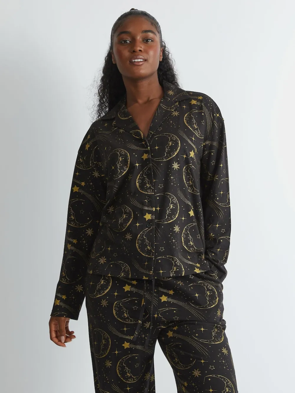 Embrace the magic of the night sky with the Skinnydip Celestial Pyjama Set in Black. This enchanting set combines sleek style with dreamy celestial elements Machine washable. 100% Cotton.