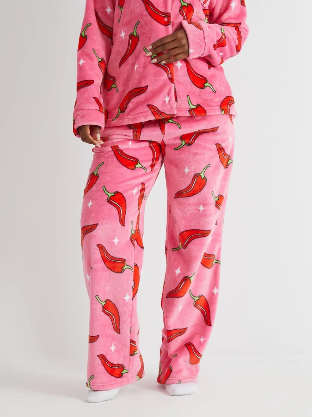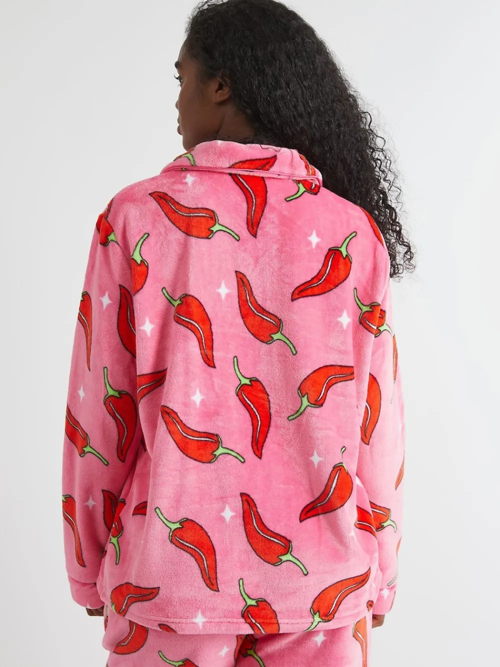 Spice up your loungewear with the Skinnydip Chilli Sparkle Twosie Fleece Pyjamas Set! This playful and cosy set combines comfort with a little extra flair, making it the perfect choice for relaxing nights in or slow mornings at home. Machine washable. 100% Polyester.