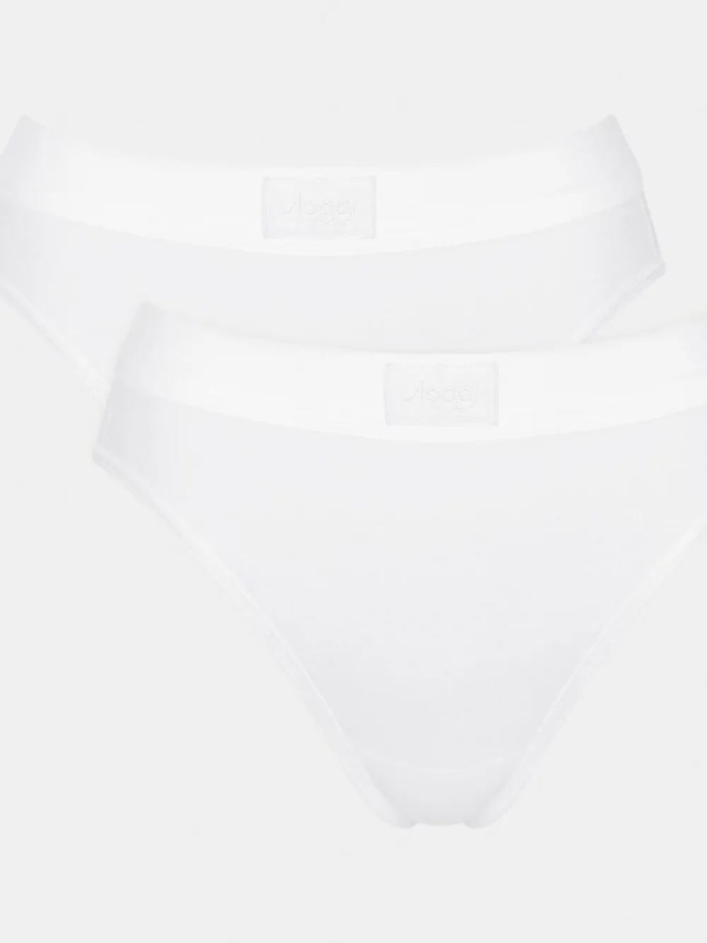 This Double Comfort tai brief features a high-cut leg for a flattering shape and is now available in a handy 2-pack! The seamless tubular waistband with sloggi branding gives this brief a subtle sporty look while the fine towelling gusset and GOTS-certified, soft organic cotton ensure all over comfort. Machine washable. 95% Cotton, 5% Elastane.