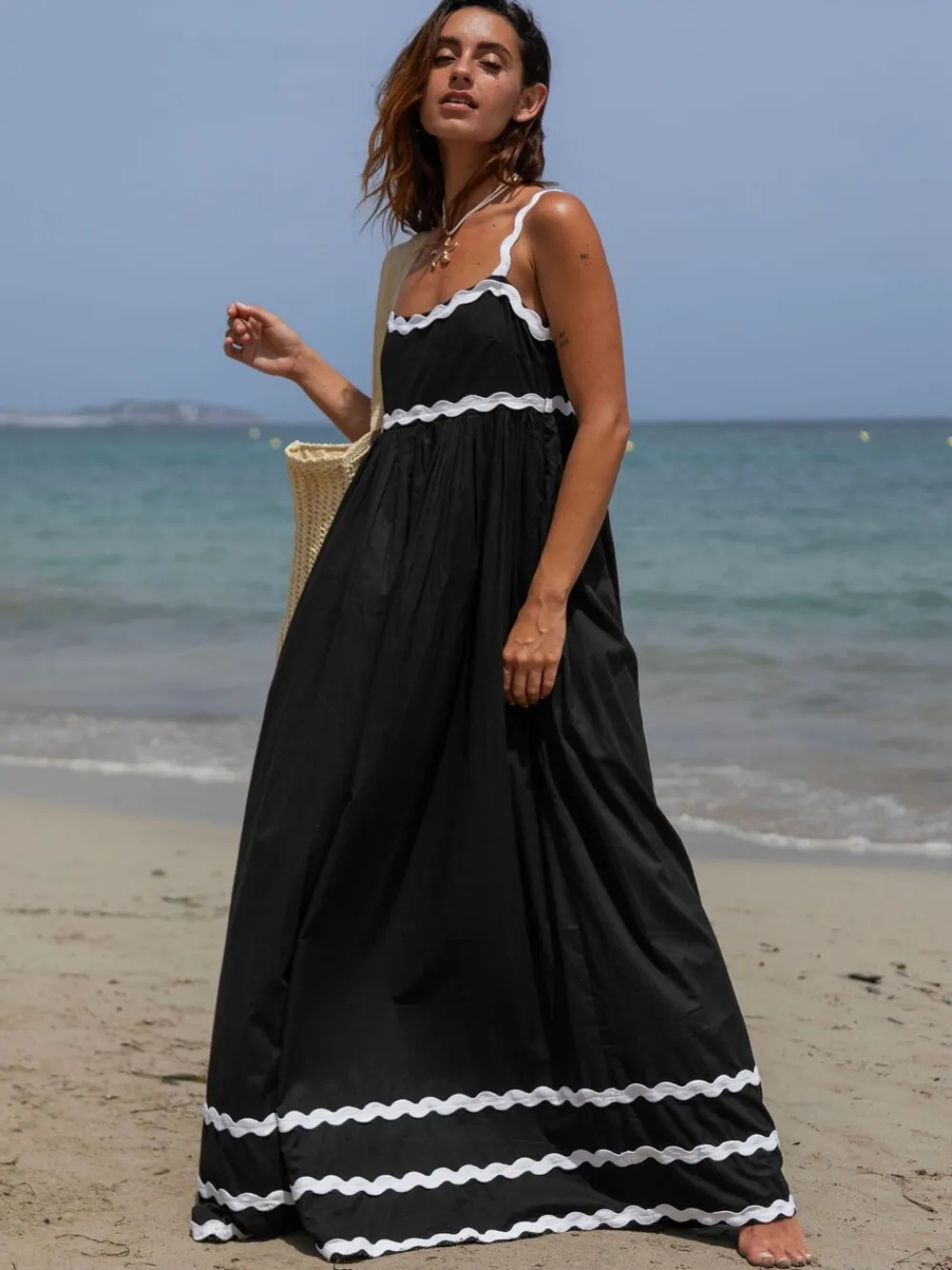 Be the first to review “South Beach Black Monochrome Cotton Ric Rac Detail Maxi Dress Online” Cancel reply