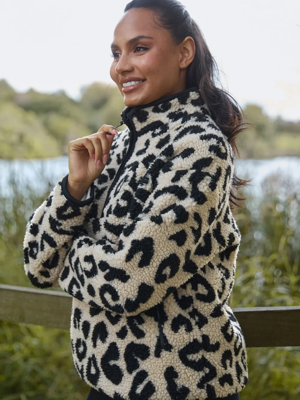 Update your outerwear with our teddy jackets. All-over borg fleece Quarter zip closure Dual pockets Model is 5ft 9” and wears size S. Machine washable. 100% Polyester.