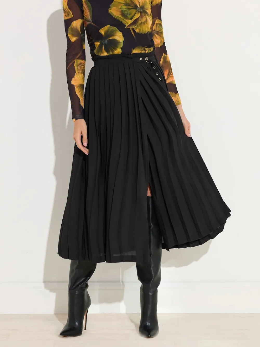 Star by Julien MacDonald Black Pleated Maxi Skirt Outlet