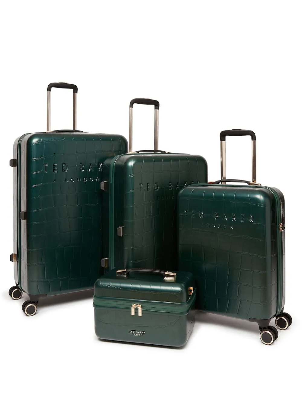 Inspired by Ted Baker’s Icon Bag, Icon Case brings statement design to every journey. With a croc embossed finish, bold branding, and a refined silhouette, Icon Case is designed for the traveller looking to stand out. This beautifully coordinated 4-piece collection includes a Vanity Case, Cabin, Medium and Large suitcase. Height 25cm Width 36cm Depth 20cm 100% ABS (Acrylonitrile Butadiene Styrene).