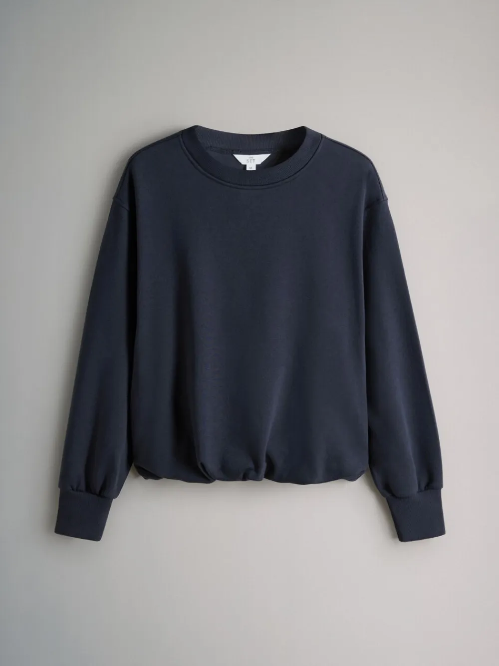 Get a stylish, relaxed silhouette with THE SET 2 Pack Bubble Hem Sweatshirts. This multipack includes two essential colours: a classic sage green and a deep navy blue. Each sweatshirt is made from a comfortable cotton rich fabric and features a classic crew neck and long sleeves. The design detail is the relaxed volume of the sleeves and the neat bubble hem, which cinches slightly at the waist for a flattering, modern shape. 2 pack Bubble hem Crew neck 2 x Sweater 70% Cotton, 30% Polyester.