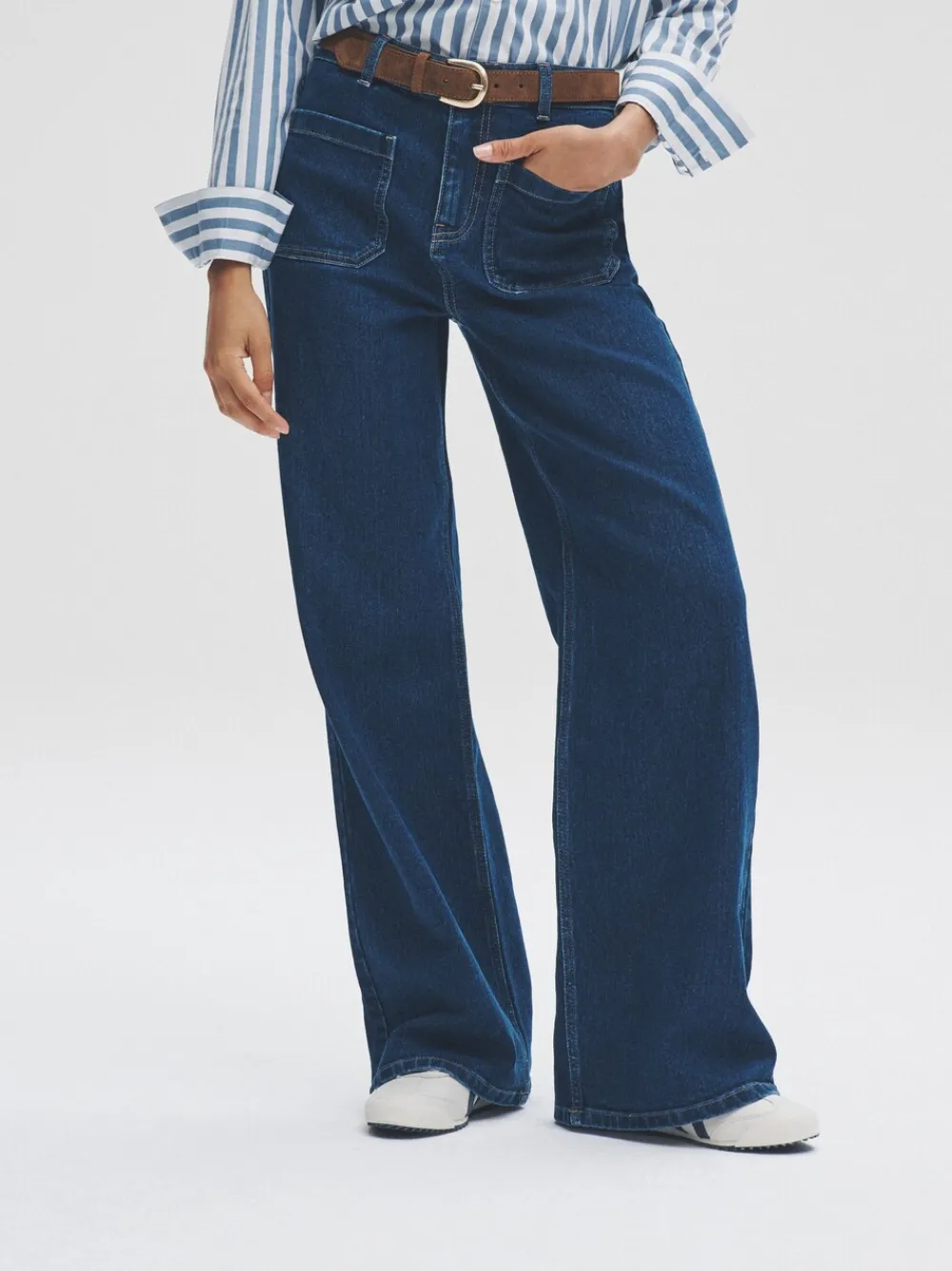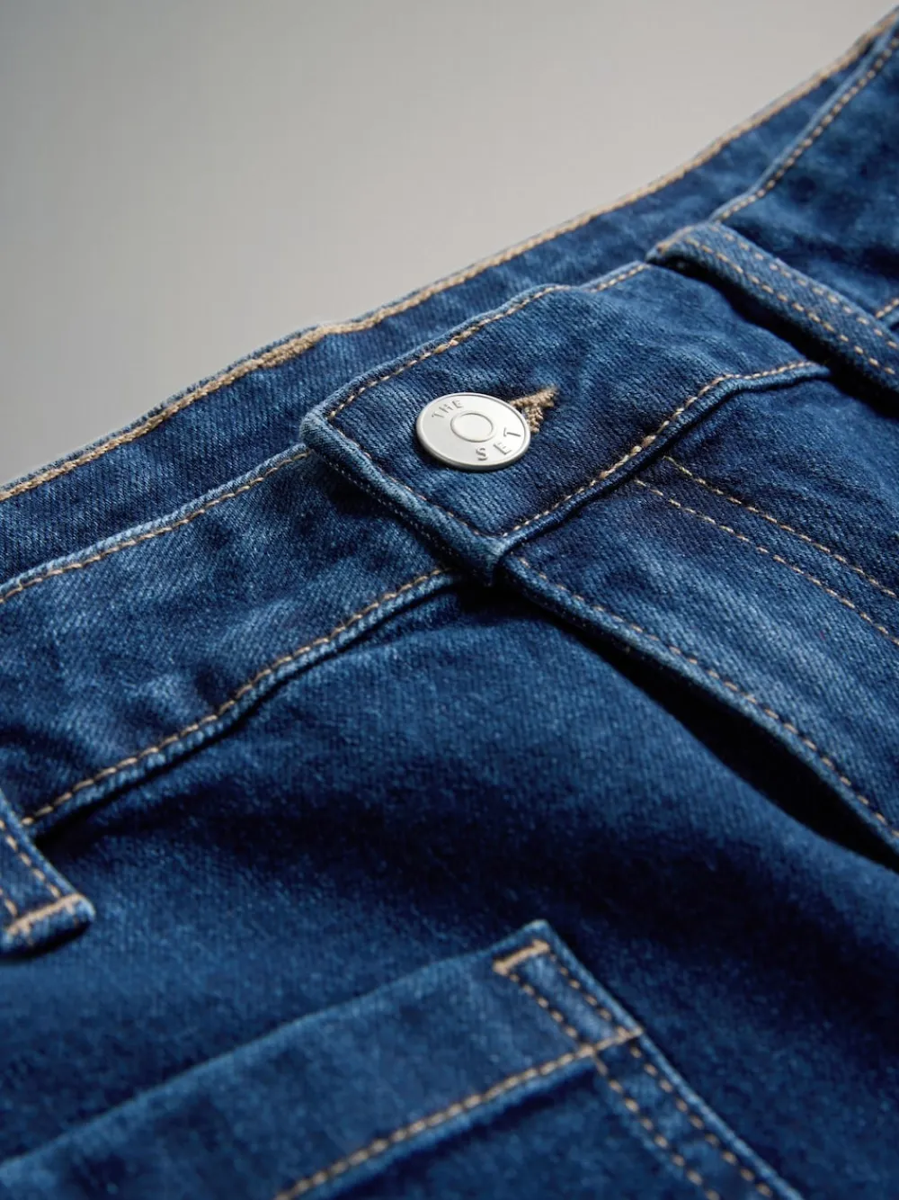 Introduce a stylish, contemporary cut to your denim collection with THE SET 2 Pack Patch Pocket Wide Leg Jeans. This set offers two essential washes: a deep indigo blue and classic black. Crafted from soft denim, these jeans feature a fashionable wide leg silhouette. The standout detail is the large patch pocket detail on the front, adding a retro, workwear-inspired element. 2 pack Wide leg Soft denim Patch pocket detail 2 x Jeans 70% Cotton, 23% Polyester, 6% Lyocell, 1% Elastane.