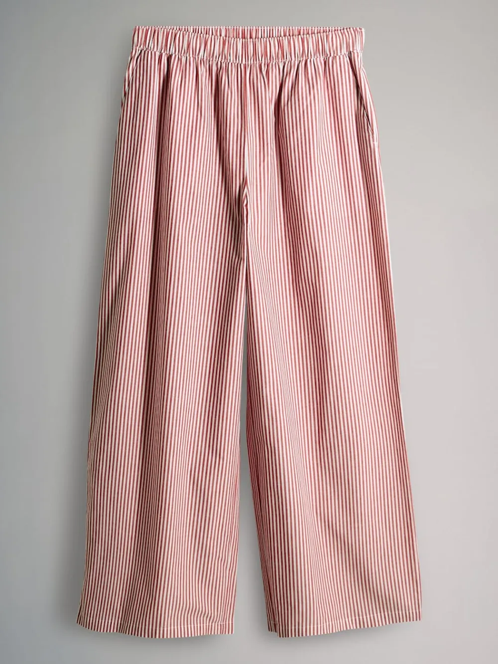 Embrace a relaxed yet polished look with THE SET 2 pack pull-on trousers. This set includes a navy stripe and a red stripe pair, both crafted from a breathable polyester-cotton blend. Designed for ultimate comfort, they feature a pull-on elasticated waist and a wide-leg loose fit, making them an effortless addition to your everyday wardrobe. 2 pack Pull-on Relaxed fit 2 x Trouser 65% Polyester, 35% Cotton.