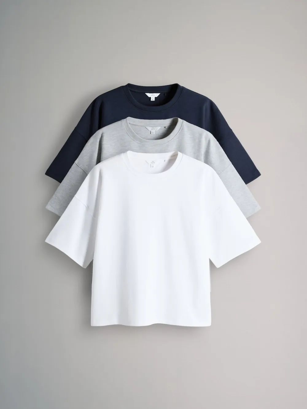 The Set 3 Pack Heavyweight Premium Boxy T-Shirts Navy/ Grey Marl/ White