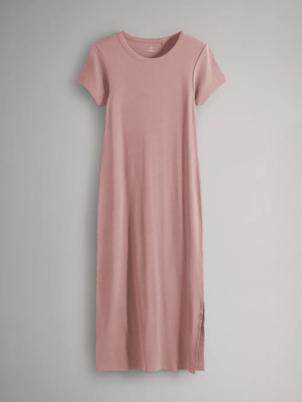 The Set 3 Pack Short Sleeve Ribbed Midi Dresses Black/Mauve Pink/Light Pink Clearance