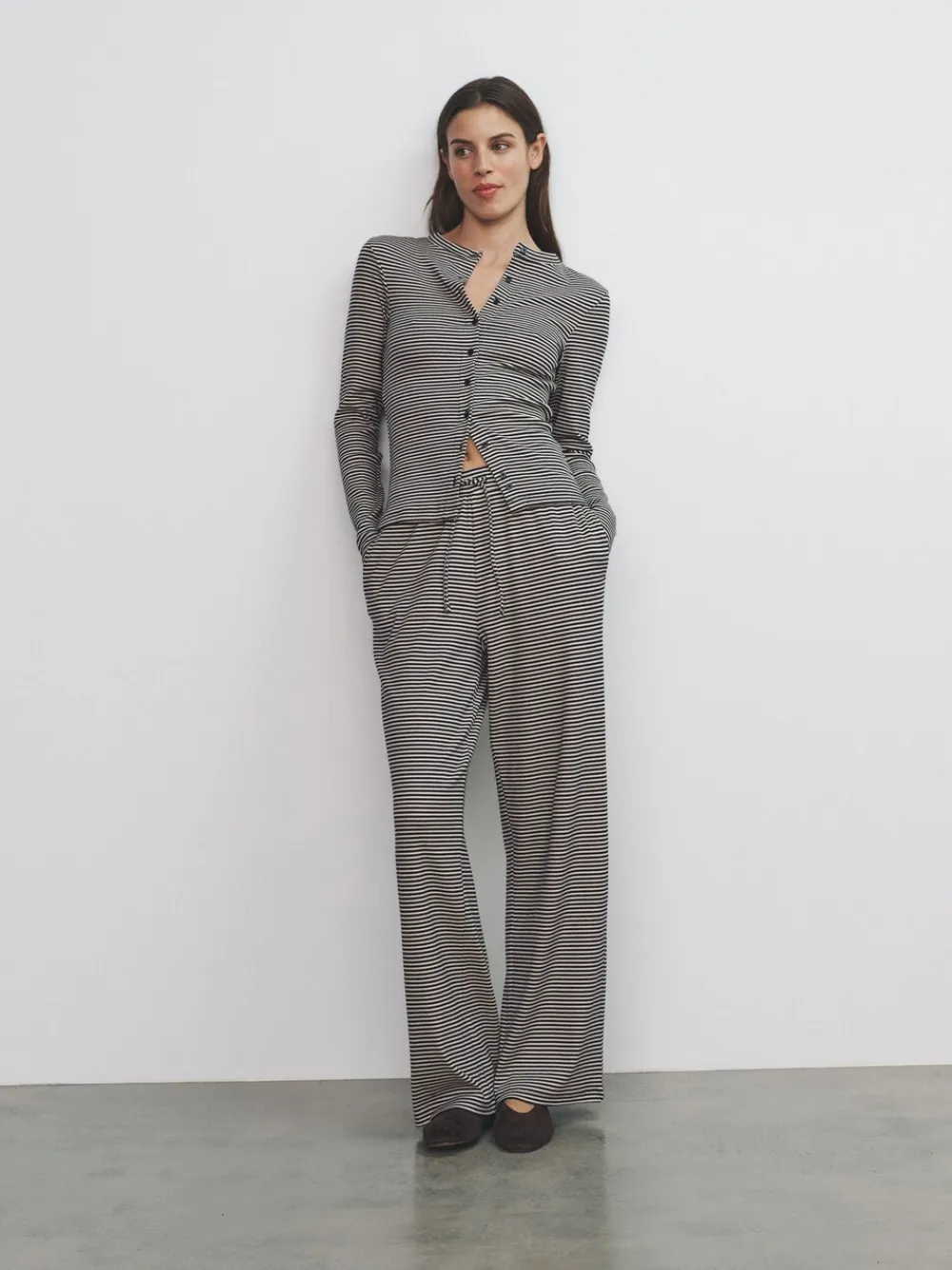 The Set Stripe 2 Pack Button Through Long Sleeve Top and Drawstring Trousers Co-Ord Set Online