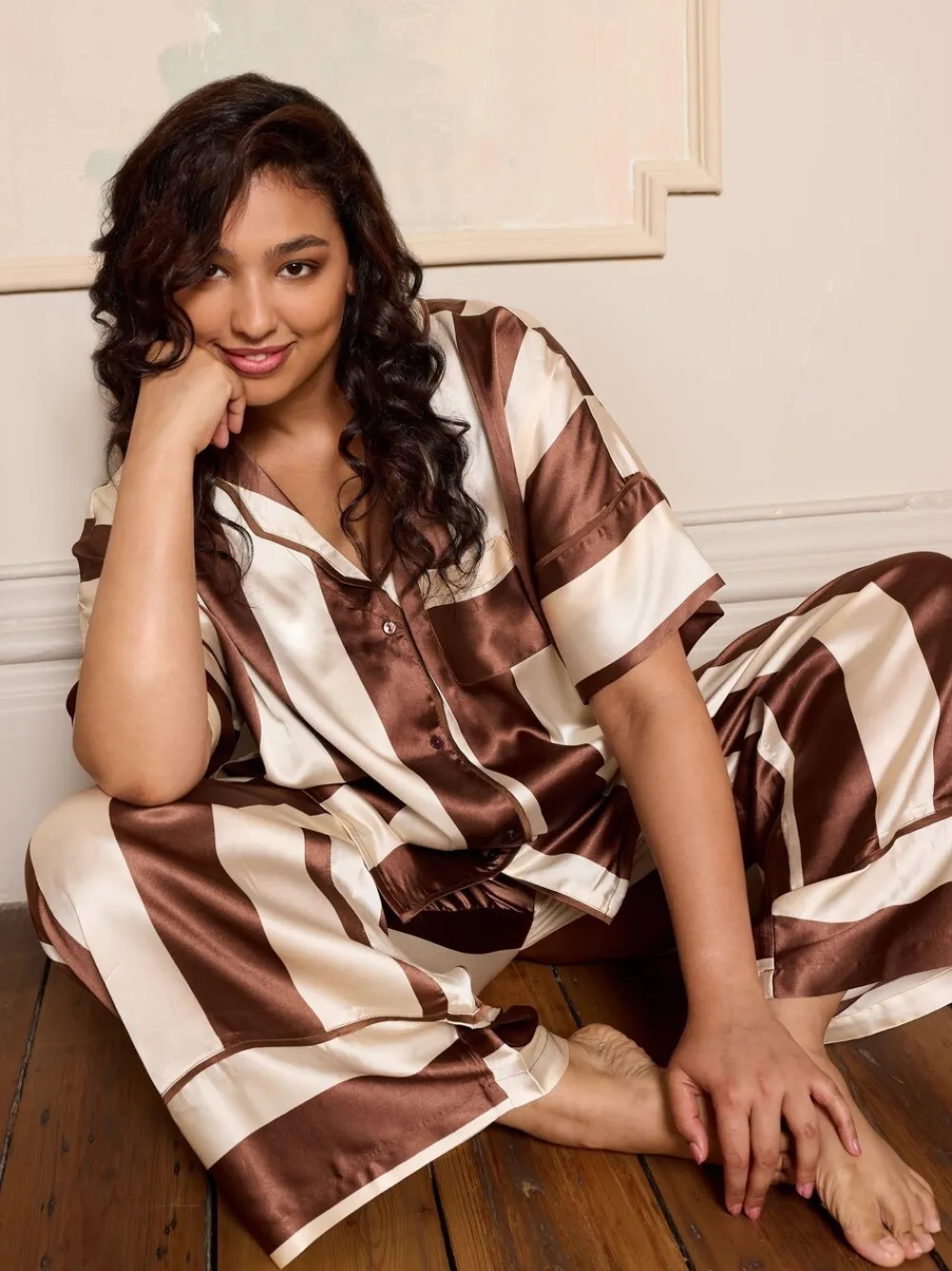 Be the first to review “Their Nibs Brown Stripe Satin Oversized Long Pyjamas Set” Cancel reply
