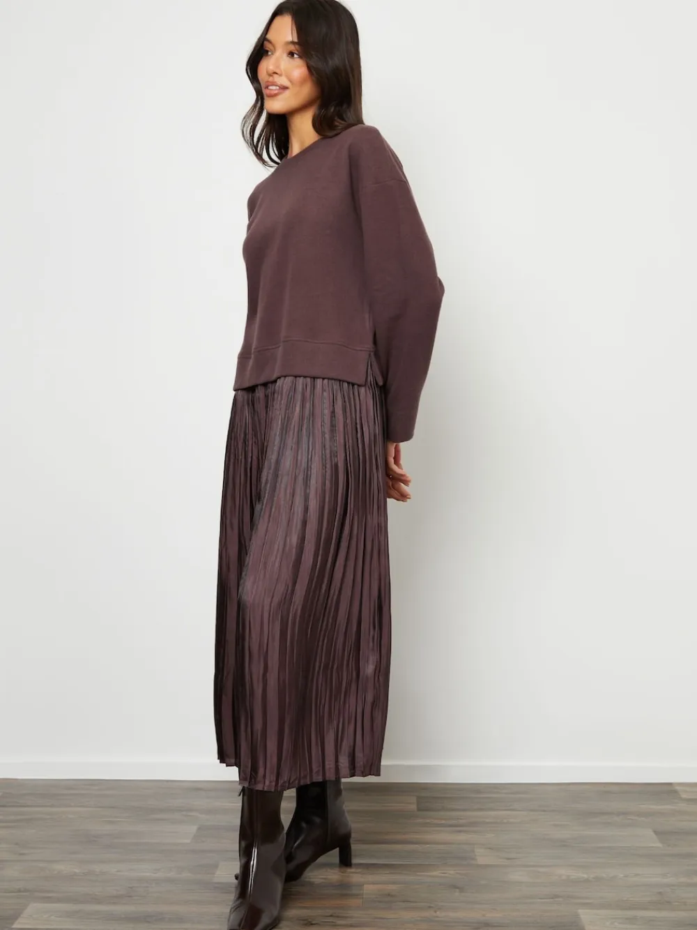 Threadbare Brown 2-In-1 Relaxed Ribbed Sweatshirt Midi Dress Best