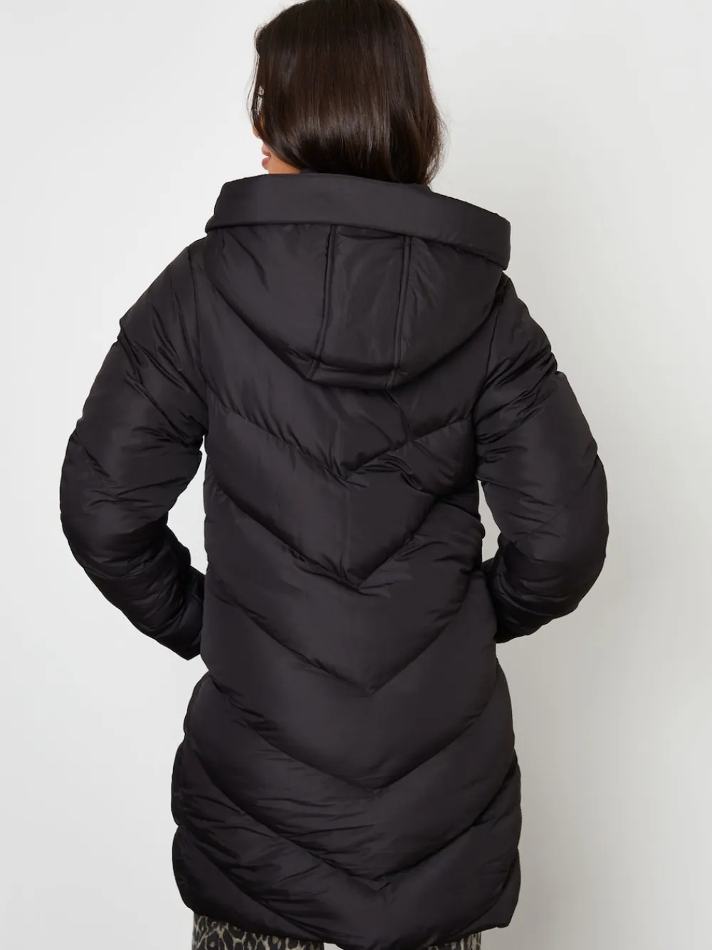 Elevate your outerwear with this Threadbare mid-length, hooded puffer jacket. Designed with chevron padded quilts, the jacket features a lined three-piece hood, funnel neck collar, stylish drawcords, and two angled pockets. This elevated padded coat also has a full two-way zip fastening and a duvet hem for a clean finish. Perfect with jeans and trainers for casual weekend styling. Model wears UK Size 8. Machine washable. Outer 100% Polyester. Lining 100% Polyester. Filling 100% Polyester.