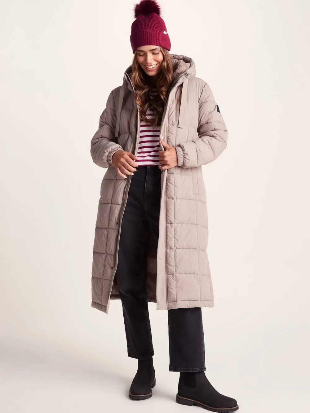 Say hello to Anya knitted hat. Your new winter go-to when the cold creeps in. Cosy. Comfy. And full of charm. This woolly hat is the winter essential you’ll be reaching for on repeat. The chunky ribbed knit hugs your head in gentle warmth. Like a hot brew on a frosty morning. The Anya beanie hat keeps the heat in and the chill out no matter what the forecast throws your way. With the turn-up fitting close to your ears for extra warmth where it matters most and holding it’s shape day after day. Up top. A faux fur pom pom brings a bit of cheer to grey skies. Because practical doesn’t have to mean boring. Whether you’re mooching around a Christmas market or braving an icy school run. This woolly hat has got you covered. Finished with a subtle TOG24 badge on the turn-up. This knitted hat pairs easily with anything in your cold-weather wardrobe. Just pull it on. Head out. And let the cold do it’s worst. Machine washable. Main 70% Acrylic, 26% Nylon, 4% Elastane. Lining 75% Acrylic, 14% Modacrylic, 11% Polyester.